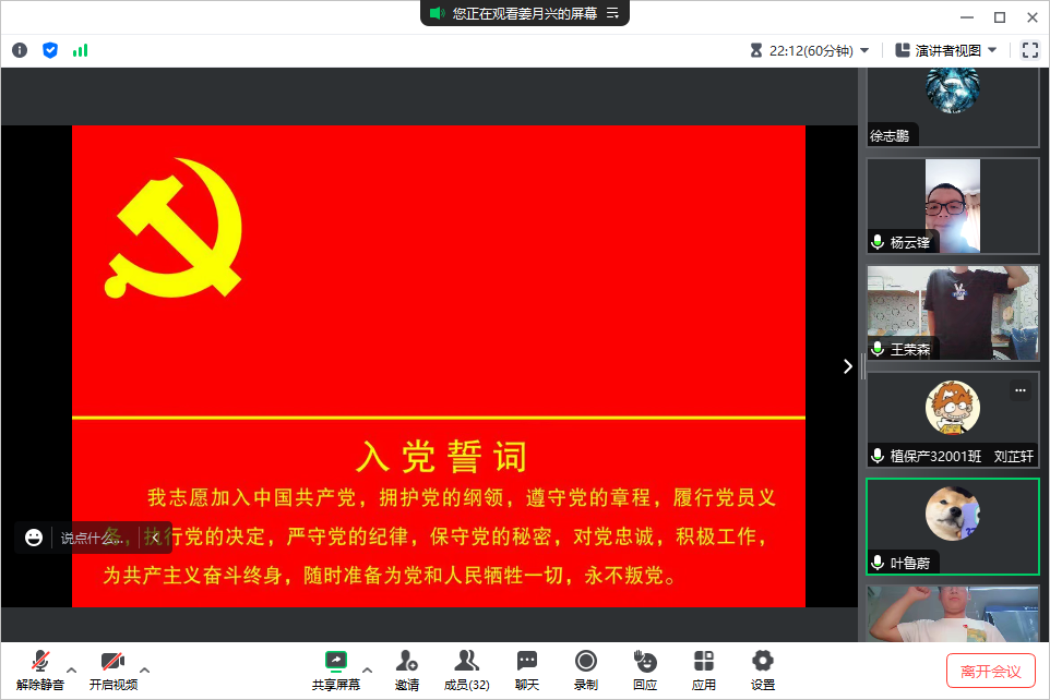 (通讯员 徐志鹏)7月27日晚上19:00,公司本科生党支部在腾讯会议开展七月主题党日活动。本次活动由支部党员姜月兴同志主持。