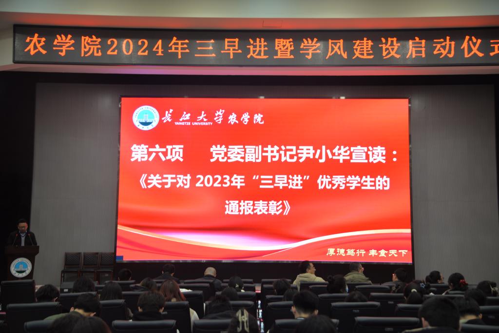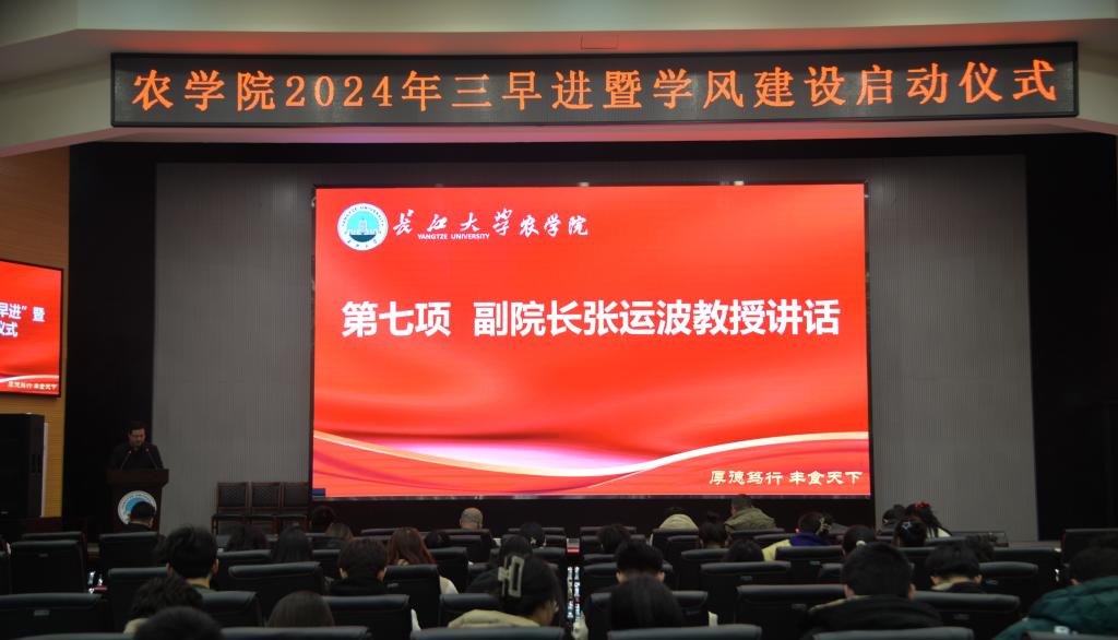 (见习记者 曹淏郁 唐玉婷/文 邬道瑾/摄)为了促进员工厚植爱农兴农情怀,坚定强农兴农的时代使命,公司积极践行“厚德笃行、丰食天下”的院训,深化“三早进”工作,3月7日下午16时,在农科大楼1058会议室举行2024年“三早进”暨学风建设启动仪式。仪式由23级辅导员唐玉婷主持,副经理张运波、党委副书记尹小华、经理助理苏奇、农学系主任邓锋林、植保系主任邓建新、农资系主任李燕丽、课题组对接研究生、22级和23级班主任及全体员工、兼职辅导员李洪洲参与此次仪式。